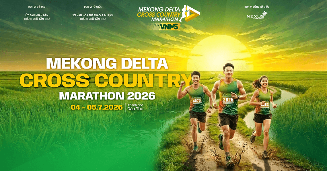 Sau sáu mùa giải thành công của Mekong Delta Marathon, giải chạy chính thức bước sang một kỷ nguyên mới với loại hình Cross Country Marathon độc đáo. Mekong Delta Cross Country Marathon 2026 mang đến trải nghiệm chạy băng đồng đặc trưng miền Tây, nơi vận động viên sải bước qua đồng ruộng, kênh rạch và những cung đường làng mộc mạc của vùng Đồng bằng sông Cửu Long.