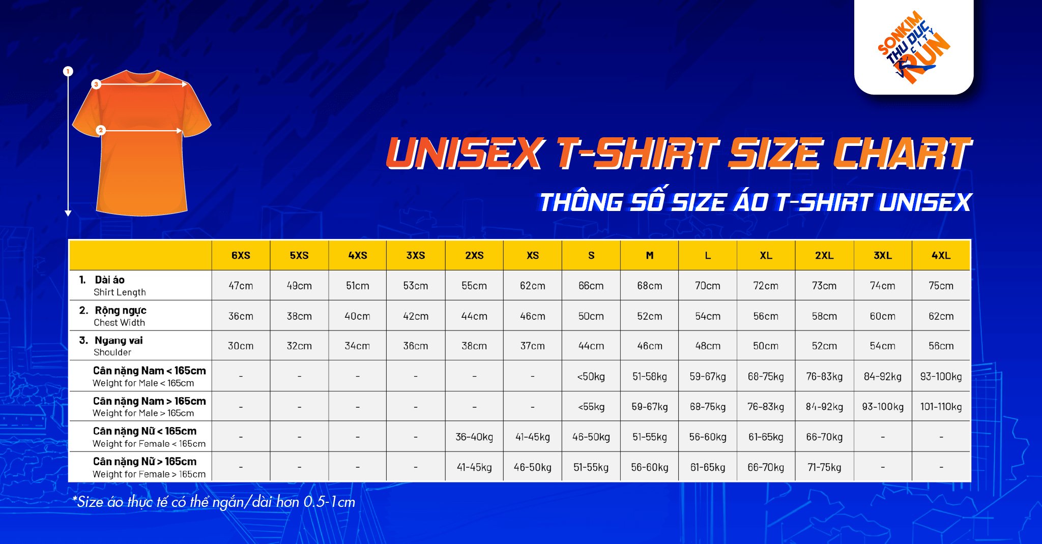 - BTC sẽ cung cấp kích thước áo như VĐV đã đăng ký. Trong trường hợp kích thước áo không phù hợp khi VĐV đến nhận, mong VĐV thông cảm và chuyển sang size khác. BTC sẽ hỗ trợ khu vực đổi áo để các VĐV tự thay đổi theo nhu cầu của mình.